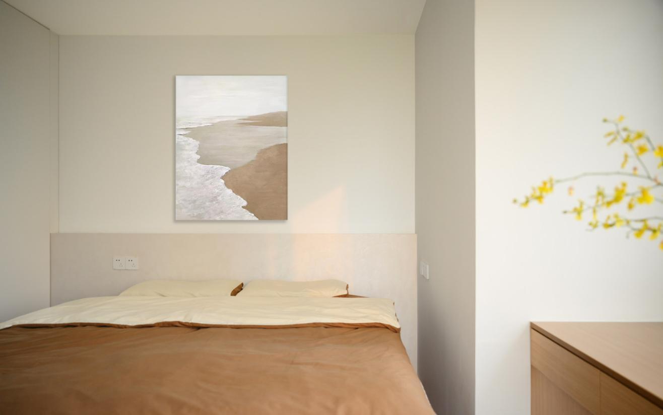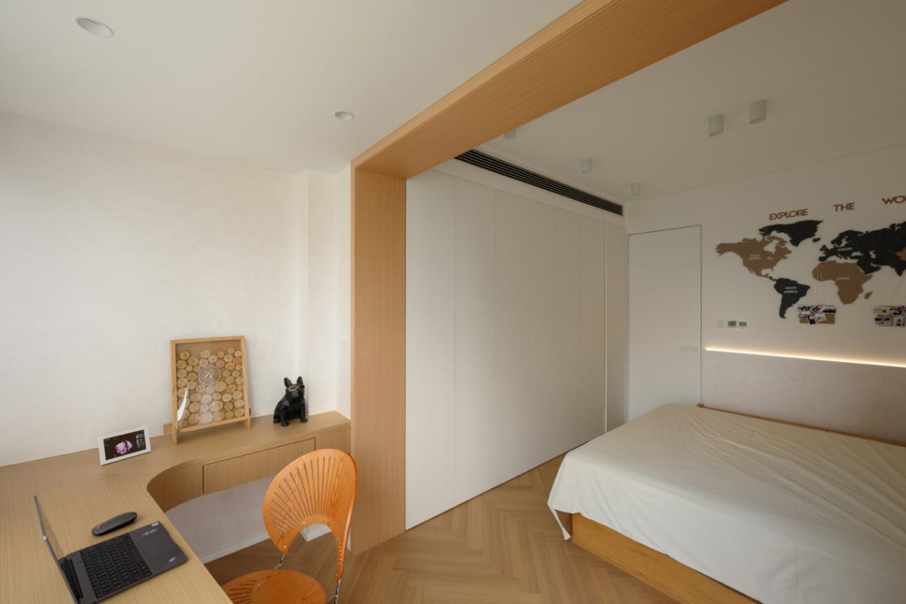 次卧是给父母预留的,后期也可转为儿童房。同时,考虑到老人的睡眠习惯,定制一张可分可合的双人床,也保障了睡眠质量。