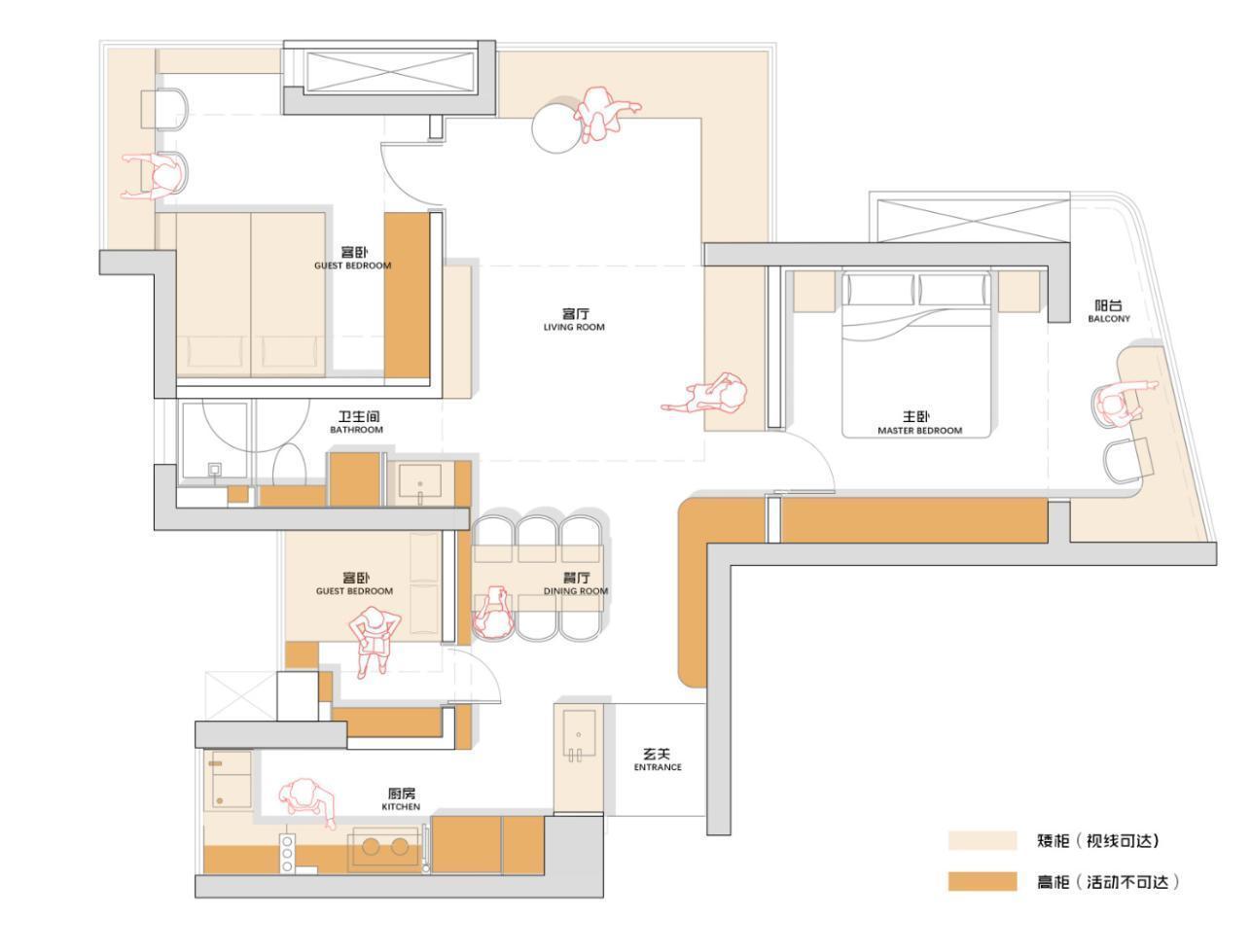 3、主卧与客厅对调,并结合飘窗台定制沙发,释放出更多的活动面积。